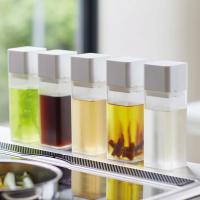 キッチンでよく使う調味料を詰め替えて使用できる、おしゃれな調味料ボトルです。容器を揃えて並べておけば、統一感が生まれ、すっきりとした印象に。軽くひねるだけでフタを開けられ、ワンプッシュで閉められます。スリムで手に取りやすいから、調理中でも卓上でもサッと使えて便利です。ノズルが取り外せるので詰め替えも簡単にでき、分解して洗えるから清潔に保てます。見せる収納で美しいキッチンへ。