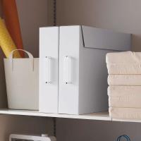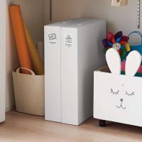 お子様がご家庭に持ち帰った作品をひとまとめに保管できる大容量の収納ボックス(2個組)です。モノトーンのシンプルなデザインで、お部屋の印象を変えずにすっきりと収納できます。A2サイズ・四つ切の画用紙も折らずに収納でき、立体的な作品も一緒に入れられます。持ち帰りの作品バッグごと収納しても◎。縦横どちら向きでも保管することができるので、収納スペースに合わせて置くことができます。取り出すときに便利な持ち手付き。紙製なので市販のラベルを貼ったり、書き込んでアレンジするのもおすすめです。※ラベルは付属していません。