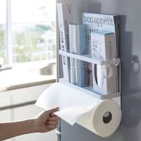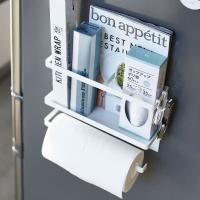 マグネットがくっつく平らな面に設置できる収納ホルダーです。冷蔵庫横にピタッと簡単に設置でき、キッチンペーパーやラップなど、よく使うキッチン小物をまとめて収納できます。モノトーンのシンプルなデザインで、様々なテイストのキッチンに馴染みます。