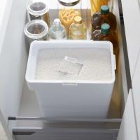 シンク下やパントリー、キッチンボードなどにも収納しやすいサイズ感。フタは前面が開くのでシンク下に置いてもお米が取りやすい設計。シンク下に隠してキッチン周りをスッキリさせたい方にもおすすめです。