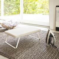 シンプルでスタイリッシュなデザインのスクエア型のアイロン台です。しっかりと衣類にスチームを通してくれるスチールメッシュ構造で、ワイシャツがパリッと仕上がります。収納時の厚さは約4cmととてもコンパクトで、ハンガーフックも付いているから、そのままクローゼットに収納可能。重量約2.4kgと軽量で持ち運びも楽なため、毎日アイロンを使う方にもおすすめ。一度に広い面積をアイロンがけできるから、何度も衣類を置きなおす手間を減らせるのも嬉しいポイント。色は、清潔感のあるホワイトと高級感のあるブラックの2色からお選びいただけます。