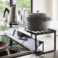 コンロ奥の空間に収納スペースを作れるコンロラックです。よく使う調味料を置いておけば、探す手間なくさっと手に取れて、毎日の料理がよりはかどります。広くなった両サイドは、鍋やフライパンなどの置き場として最適。