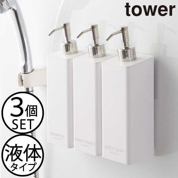 | 注意事項 | ※こちらの商品はディスペンサー3個セットです。 ※【3種類】の内容は【シャンプー・コンディショナー・ボディーソープ】になります。 ご注意ください。 ※設置予定場所が取付可能な壁面か、あらかじめご確認の上ご購入下さい。 ※平らな面であっても接地面の表面加工、材質、状態、環境などによっては取り付けできない場合もあります。 ※市販の詰め替え用パックの形状・サイズによっては対応できないものもあります。 |