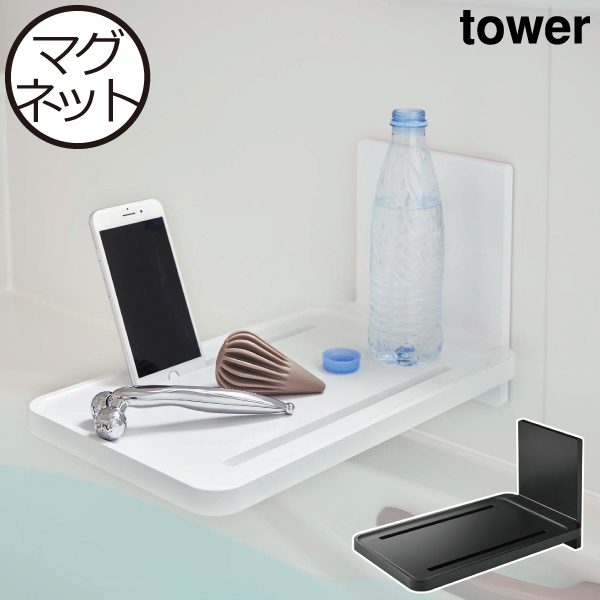 マグネットで簡単に取り付けられる折り畳み棚です。様々な空間に馴染む、モノトーンのシンプルなデザイン。お風呂場の壁面に取り付ける事で、スマホやタブレットPC、飲み物、美容グッズなどを一時的に置くスペースを作ることができます。動画やSNSを楽しんだり、じっくり半身浴をしたりと、リラックスしたバスタイムを過ごせます。使わないときは折り畳んでスリムに収納できて便利。棚には溝付きで、そこから水が切れ、嫌なヌメリを予防できます。本体は強力なマグネットでしっかり固定できるので、ずり落ちず安心です。