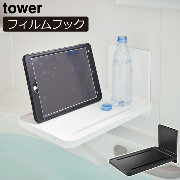 フィルムフックで簡単に取り付けられる折り畳み棚です。様々な空間に馴染む、モノトーンのシンプルなデザイン。お風呂場の壁面に取り付ける事で、スマホやタブレットPC、飲み物、美容グッズなどを一時的に置くスペースを作ることができます。動画やSNSを楽しんだり、じっくり半身浴をしたりと、リラックスしたバスタイムを過ごせます。使わないときは折り畳んでスリムに収納できて便利。棚には溝付きで、そこから水が切れ、嫌なヌメリを予防できます。フィルムフックは、はがして繰り返し使えます。