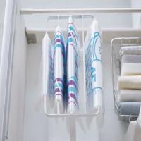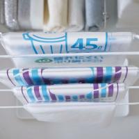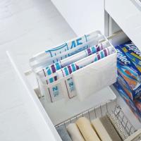 ポリ袋を一束ずつ掛けて収納できるので、ポリ袋の種類が一目でわかり、使いたいポリ袋が楽に取り出せます。探す手間が省けるので、キッチンでの作業もスムーズに。ポリ袋は最大5か所に掛けられます。