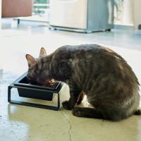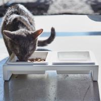 犬・猫どちらにも使っていただけるスタイリッシュなペットフードボウルスタンドです。ペットグッズは生活感が出てしまいがちですが、シンプルながらも上質なデザインなのでどんなお部屋にもピッタリ。器が2つ付いているのでお水とフードをまとめて置くことができます。取り外しが簡単なので、食事の準備のたびにさっと洗って清潔に保てます。四角形の器なので四隅を使って最後まで食べやすく、安定感抜群なのでペットも快適。色はホワイトとブラックの2色からお選びいただけます。