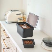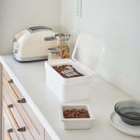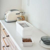 ふたにはパッキンが付いているため、湿気やニオイ漏れ、ホコリの侵入をしっかり防いでくれます。片手で開閉しやすく、透明で上から残量が分かりやすいのも嬉しいポイント。