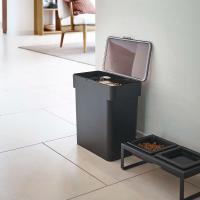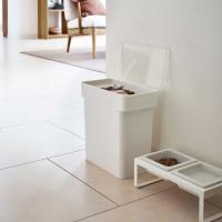 ドライタイプのペットフードを袋ごと保存できるストッカーです。どうしても出てしまう生活感を隠し、空間をおしゃれに演出してくれます。約3kgまでなら袋ごと保存できるから、手間無く移し替えたい方におすすめ。直に入れる場合は、約4kgまで保存できる程よいサイズ感です。ふたにはパッキンが付いており、湿気やニオイ漏れをしっかりガード。持ち運びに便利なハンドル付きで、詰め替えやお掃除の際にもさっと動かせます。パーツは全て分解して丸洗いできるから、いつでも清潔に保てます。目盛りの付いた計量カップが付属しており、都度はかりを取り出す必要がありません。色は、お部屋の雰囲気に合わせてホワイトとブラックの2色からお選びいただけます。