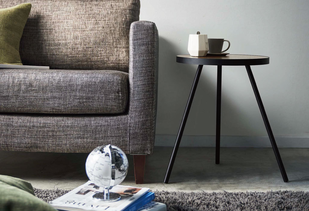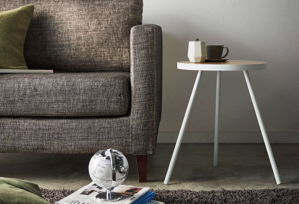 3本脚で天板をしっかり支える安定感のあるつくりです。脚には滑り止めのキャップが付いており、床に傷が付くのを防ぎます。物を置いて安心してくつろげます。