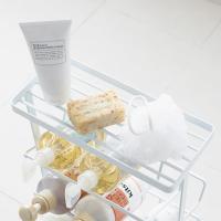 シャンプーなどのソープボトルから石鹸、洗顔フォームまで、バスグッズをひとまとめにできるおしゃれな収納ラックです。スリムな4段のラックにすっきり収納できます。