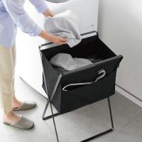 洗濯物を取り出しやすい容量35Lのおしゃれなランドリーバスケットです。様々な空間に馴染むモノトーンのシンプルなデザイン。腰への負担が少ない高床式で、洗濯物の出し入れがスムーズにできます。折り畳んで持ち運べるので、物干しスペースへの移動も簡単に。畳むと、とってもスリムなので、洗濯機横などの隙間にも収納できます。バスケットが浮いているので、風通しもよく、湿気がこもらないので衛生的。サイドのポケットにハンガーなどの洗濯小物も一緒に収納できて便利です。リビングでは収納ラックとしても活用できます。フレームは丈夫なスチール製です。