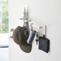 マグネットで簡単に取り付けられる収納ホルダーです。様々な空間に馴染む、モノトーンのシンプルなデザイン。玄関ドアに取り付ける事で、傘を引っ掛けてスリムに収納できます。壁面に収納するから場所を取らず、省スペース。フック付きなので折り畳み傘や鍵なども一緒に収納できます。上部のトレーには印鑑や消毒スプレーを置けて便利です。帽子などのお出かけ小物やマスクなどの衛生小物の収納にもおすすめ。本体は強力なマグネットでしっかり固定できます。丈夫なスチール製です。