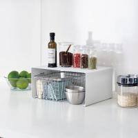 置くだけで簡単に設置できる、コの字型の収納ラックです。様々な空間に馴染むモノトーンのシンプルなデザイン。調味料や食器などのキッチンアイテムを、並べるだけで美しく収納できます。しっかりと奥行きがあるので、大きめの食器もすっきり収納できます。調理中よく使うものをスムーズに手に取ることができて、料理の作業効率もアップ。スタッキングも可能で、2つ組み合わせれば、限られたスペースをさらに有効活用できます。本体は丈夫なスチール製でお手入れも簡単です。
