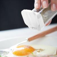 開け口は大・小の2種類あり、スライドしてお好みの開け口を使用できます。塩、コショウやパウダー類は「小」を、シード類などの大物スパイスは「大」と、使い分けて使用できます。