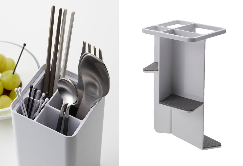 便利な仕切り付きで、お箸やスプーンなど種類別にすっきり収納。深さがそれぞれ異なるため、お子様用のスプーンやフォーク、爪楊枝やピックなどを一緒に収納しても埋もれず、さっと手に取ることができます。