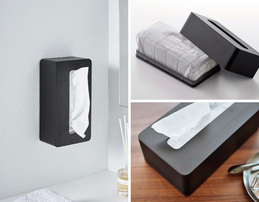 ティッシュをパッケージごと収納できるシンプルなティッシュケースです。角型のスタンダードなデザインで、詰め替えもスムーズにできます。