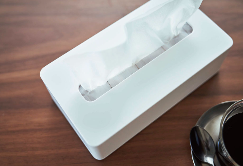 そのまま置くとどうしても生活感が出てしまうティッシュ。おしゃれなケースに入れることでパッケージが見えなくなり、すっきりとした印象に。
