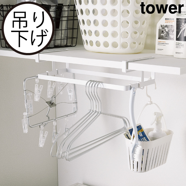 脱衣所や洗面所の棚下に取り付けられる、おしゃれな収納ホルダーです。物干しハンガーや洗濯小物などを引っ掛けて、省スペースに収納できます。