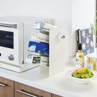 スタンドの幅は約8cmと、とてもスリム。電子レンジの横やシンク上などに置いても場所を取らず、キッチンカウンターのちょっとした隙間に置くこともできます。作業スペースが広く取れるので毎日のお料理が快適に。