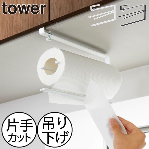 片手でカット戸棚下キッチンペーパーホルダー タワー