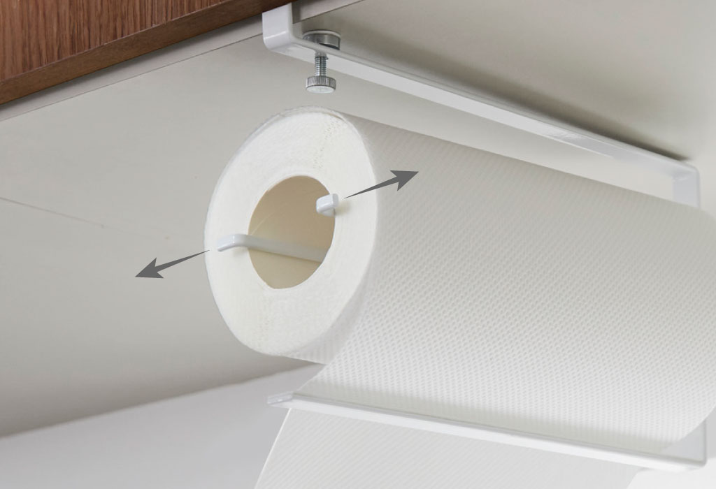 屋内の一般的な吊り下げ戸棚と、一般的なサイズのキッチンペーパーロールを対象にしています。