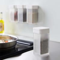 スチールパネルや冷蔵庫に貼り付けて使える、マグネット付きスパイスボトルです。塩やコショウなどよく使う調味料を、シンプルなボトルに詰め替えられるので、調味料のパッケージを隠して生活感をオフ。ラックを用意する必要もないので、すっきりしたキッチン周りに。