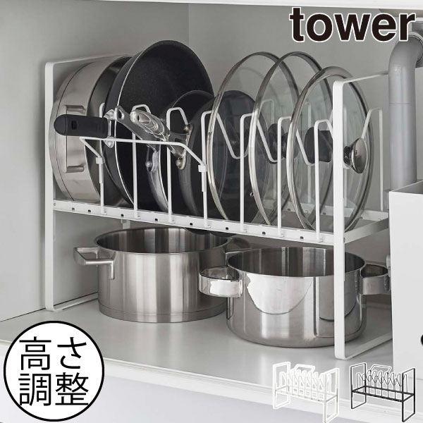シンク下高さ調整鍋蓋&フライパン収納ラック 2段 タワー