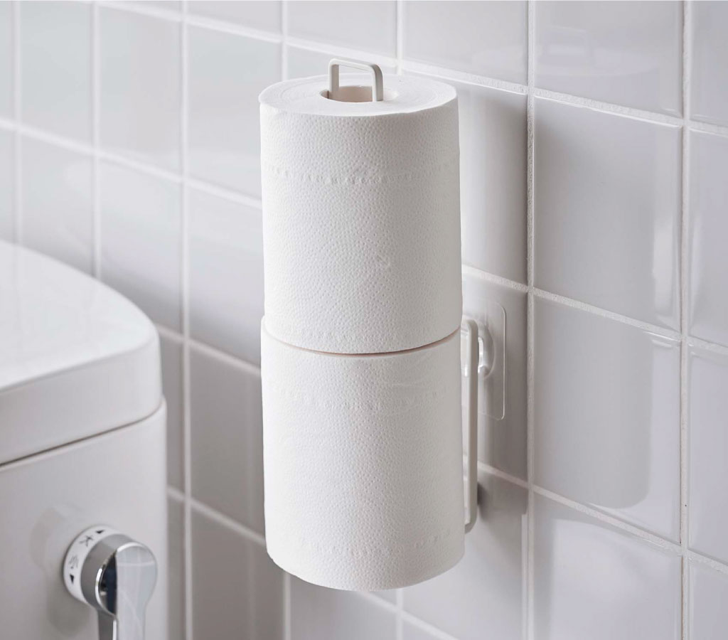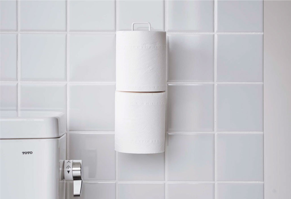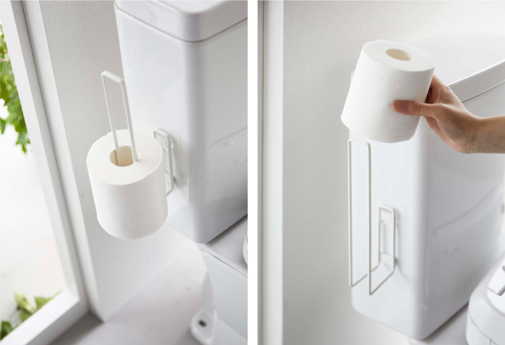 トイレットペーパーは2個ストックが可能。補充する際は、手間要らずの上から差し込むだけです。手に取りやすい位置から取り出すだけなので、ペーパー交換をよりスムーズに行うことができます。