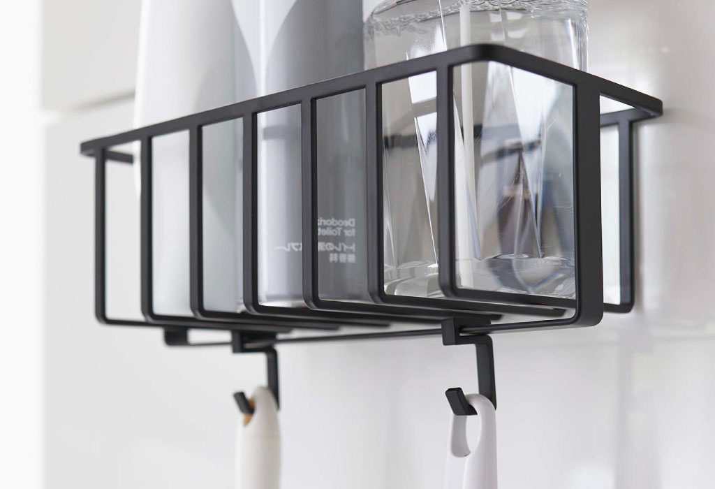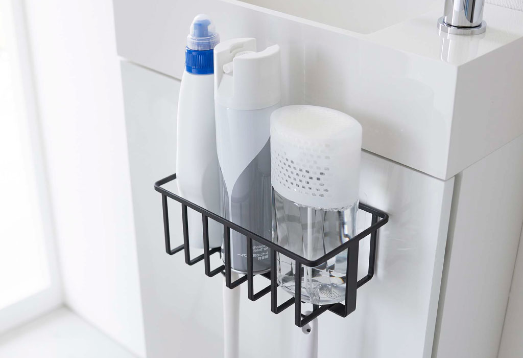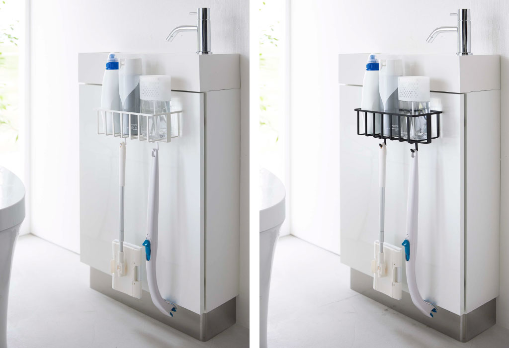 ごちゃつくトイレ用品を一括収納できる、シンプルおしゃれな収納ラックです。手洗い台やタイルなど、光沢のある壁面にぴたっと貼り付けて使うことができます。シンプルなデザインがインテリアに溶け込み、空間をよりおしゃれに。色は、ホワイトとブラックの2色からお選びいただけます。