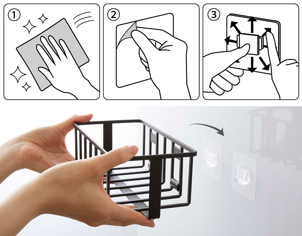 1.フィルムフックを貼る接地面のゴミ、汚れ、水あか、水分、油分などをしっかり拭き取り、乾かします。