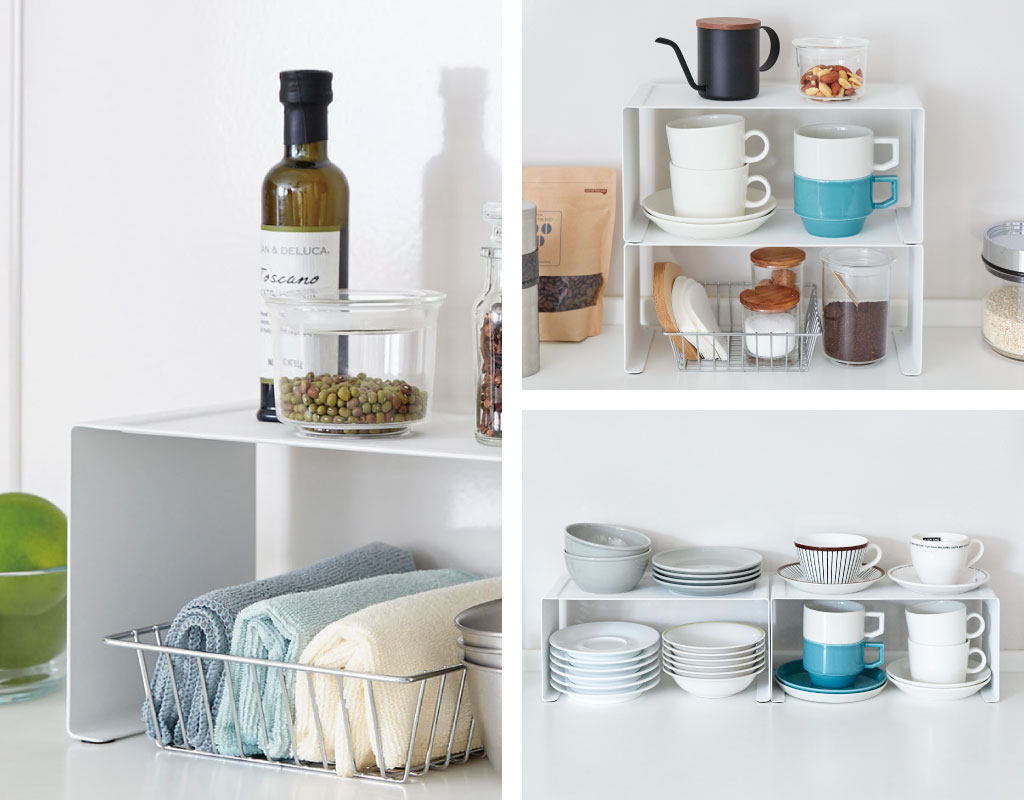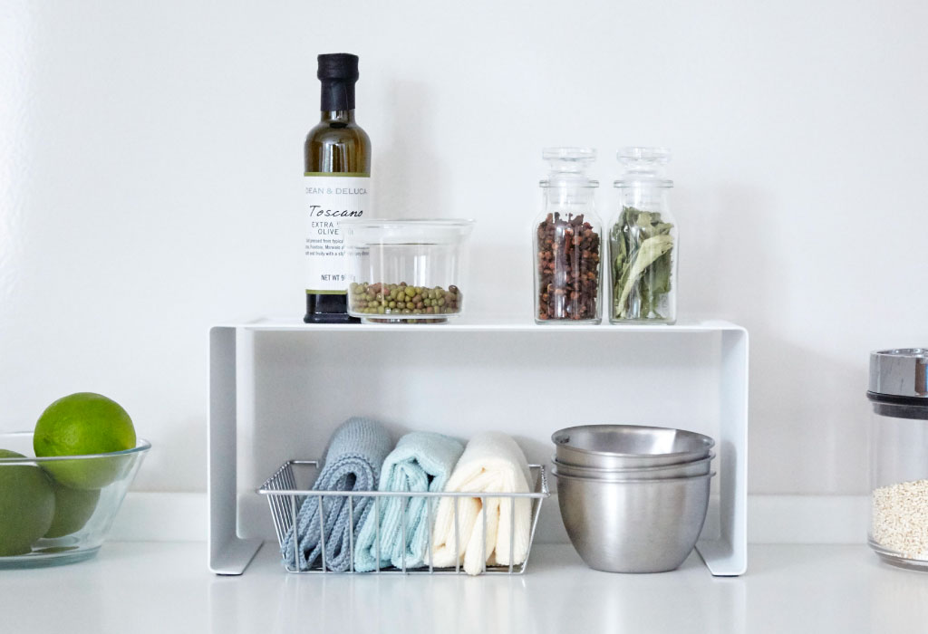 完成品なので、そのままキッチンカウンター上やキッチン戸棚の中に置くだけ。すぐに使うことができて、手軽に収納スペースをプラスできます。