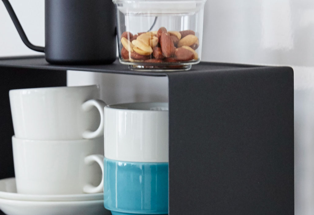 一切の無駄を省いたシンプルなデザイン。様々なテイストのキッチンに馴染み、雰囲気を壊しません。色は、お好みでホワイトとブラックの2色からお選びいただけます。