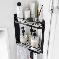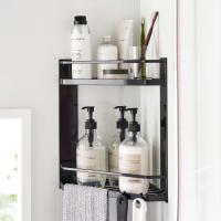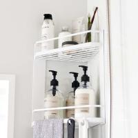 デットスペースになりがちな浴室のコーナーを有効活用したおしゃれな2段式バスラック。シャンプー類や洗顔料はもちろん、お子様が使うおもちゃなど大きい物まで壁面収納できて浴室がすっきり整います。マグネットで浴室にくっつけて設置するので壁面を傷つける心配もありません。インテリアに溶け込むシンプルなデザインで、浴室がスタイリッシュに。カラーはホワイトとブラックの2色からお選び頂けます。