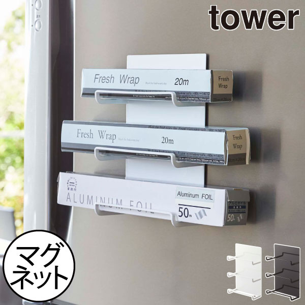 ラップホルダー おしゃれ マグネット付き スリム 冷蔵庫横 収納棚 壁付け キッチン雑貨 北欧 公式 山崎実業 マグネットラップホルダー 3段 タワー tower