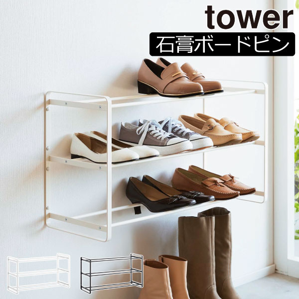 石こうボード壁対応ウォールシューズラック タワー 3段