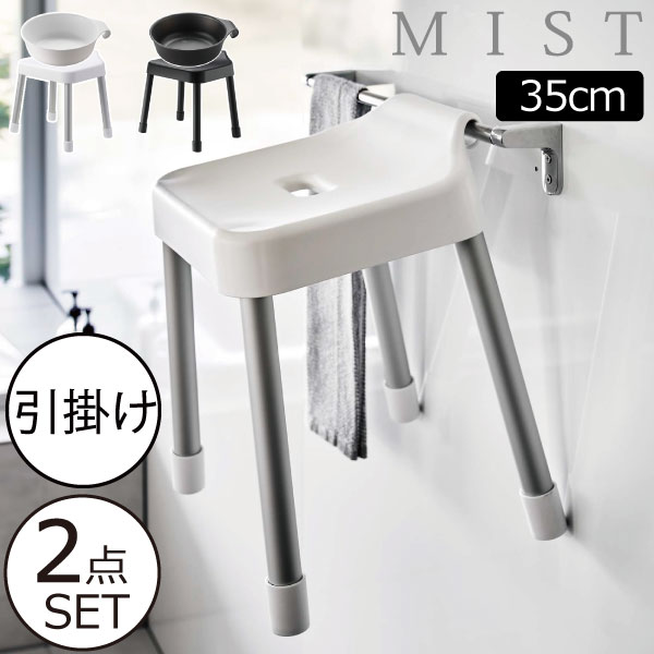 バスチェアセット 風呂椅子 35cm お風呂 椅子 壁面収納雑貨 洗面器 山崎実業 引っ掛け風呂イス ミスト SH35+マグネット&引っ掛け湯おけ ミスト MIST