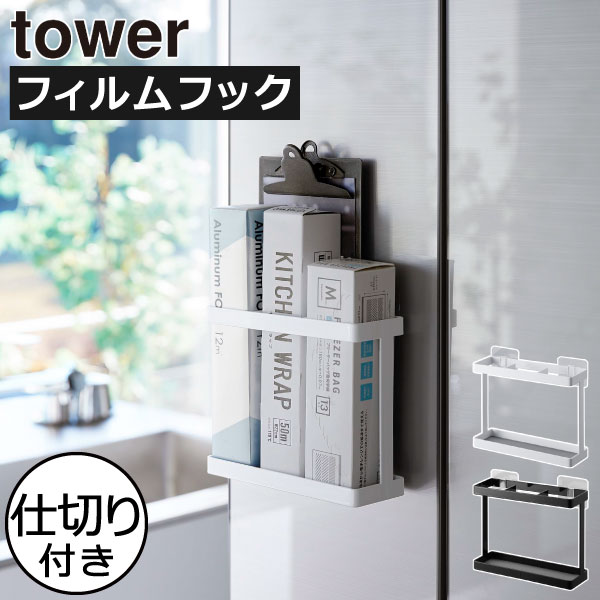 ラップホルダー 冷蔵庫扉 おしゃれ ラップスタンド 3本 シンク扉 壁面収納雑貨 キッチン雑貨 公式 北欧 山崎実業 フィルムフックラップホルダー タワー tower