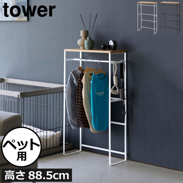 ペットの洋服やお散歩グッズをまとめて収納できるハンガーラックです。ミディアムサイズは小型犬〜中型犬、トールサイズは胴長犬・大型犬の洋服収納に適したサイズです。ペット用の小さいハンガーが掛けやすい細めのハンガーパイプで、取り出しもスムーズです。ラック側面のお好みの位置に取り付けられるフックで、リードなどを掛けることができます。天板はおやつやおもちゃの収納だけでなく、時計や消臭剤などを置いてコンソールテーブルとしてもお使いいただけます。トールサイズは、ベビー服の収納にも◎。天然木の天板とスチール製のハンガーラックの組み合わせが、リビングや玄関など様々な空間に馴染みます。ハンガーラックの色はホワイトとブラックの2色からお選びいただけます。