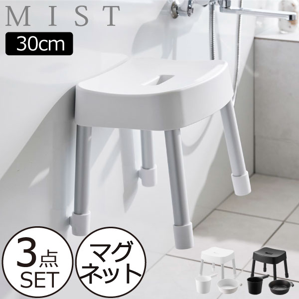 お風呂椅子 おしゃれ セット 壁面収納雑貨 30cm バスチェア 山崎実業 マグネット風呂イス ミスト SH30+マグネット&引っ掛け湯おけ+マグネット手おけ MIST