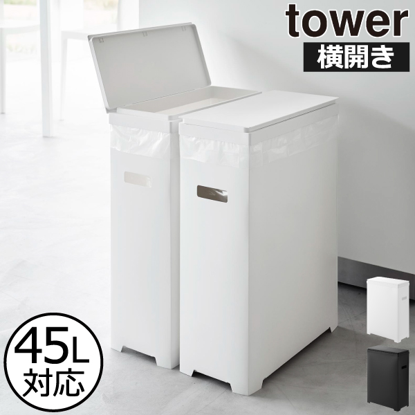 スリム蓋付きゴミ箱 tower 横開きタイプ