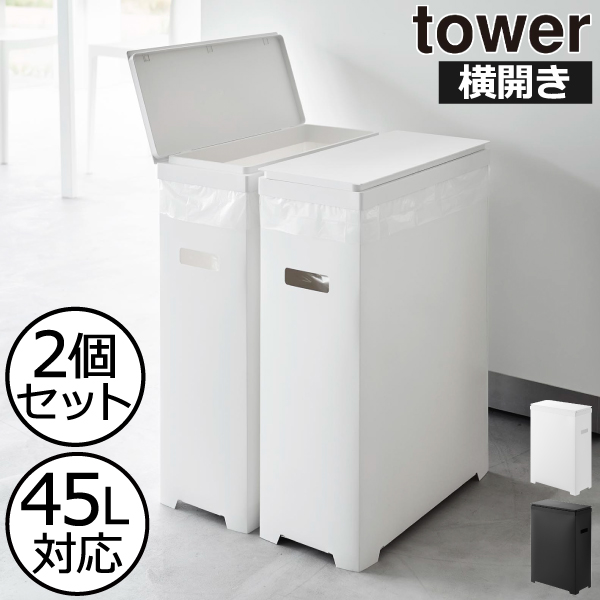 スリム蓋付きゴミ箱 tower 横開きタイプ 2個組