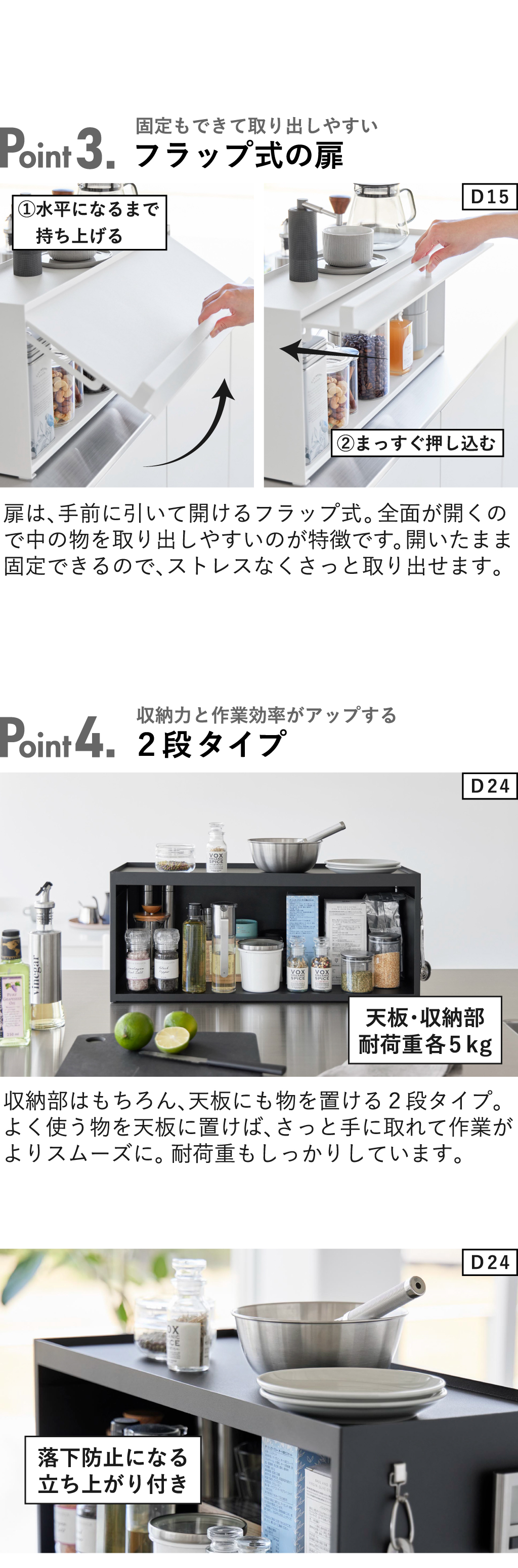 前が開くキッチンカウンター上収納ラック tower D15