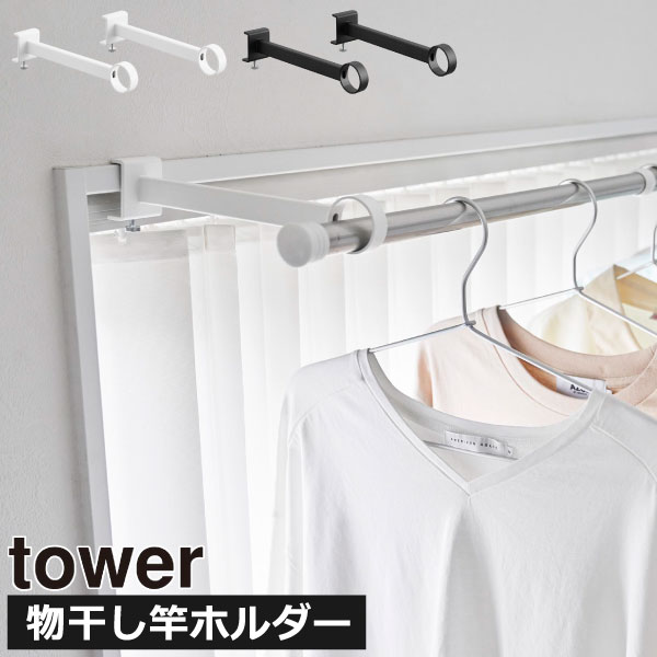 調節ネジで簡単設置。towerシリーズの鴨居にかける室内物干しホルダーです。様々なインテリアに馴染むモノトーンのシンプルなデザイン。室内物干しホルダーは調節ネジとピンで鴨居にしっかり固定できます。鴨居にかけるだけでなく、スライド扉の枠や窓枠にも取り付けられます。室内物干しホルダーにお手持ちの物干し竿を差し込むだけで、洗濯物を干すスペースを気軽に作れます。鴨居にかける室内物干しホルダーは奥行きのあるワイドタイプです。スライド扉やカーテンを閉めたまま物干し竿に洗濯物を干すことができます。ドアやカーテンに洗濯物が当たって乾きムラになるのを防ぐことができ、便利です。奥行きがあるので、物干し竿にはピンチハンガーもサッと掛けられます。鴨居にかける室内物干しホルダーは丈夫なスチール製。耐荷重7kgとしっかりとしたつくりで、洗濯物を安心して掛けられます。