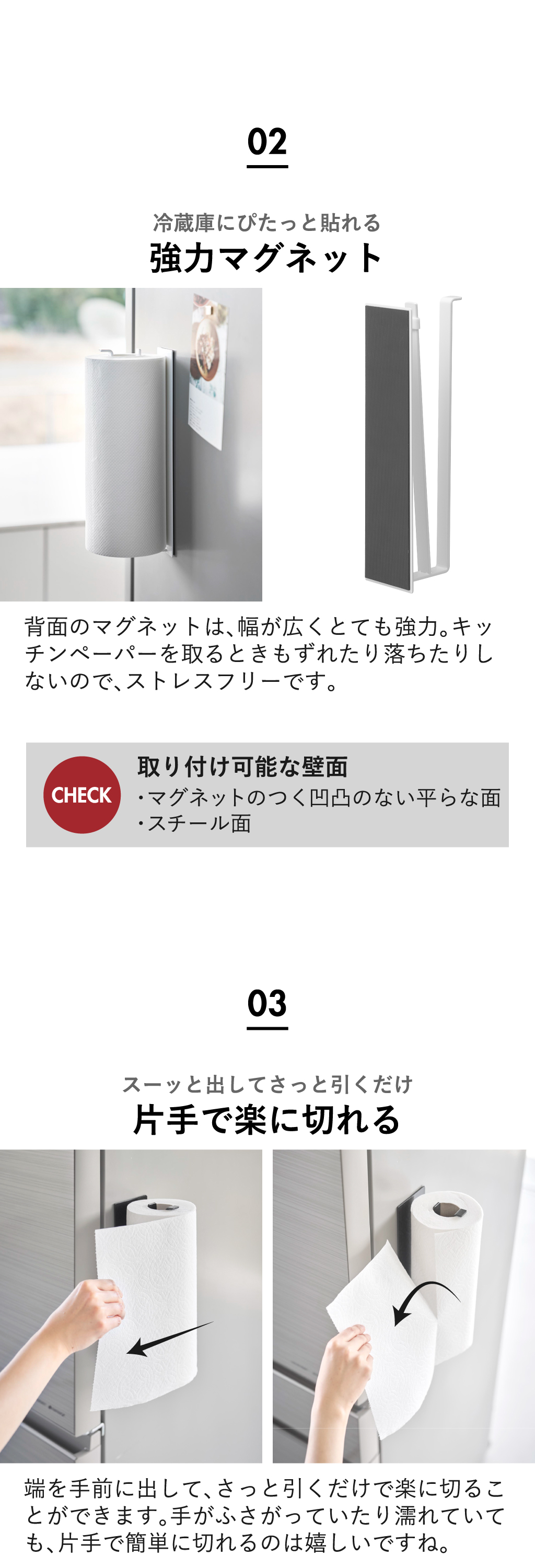 キッチンペーパーを取る時のズレや落下を防いでくれます。