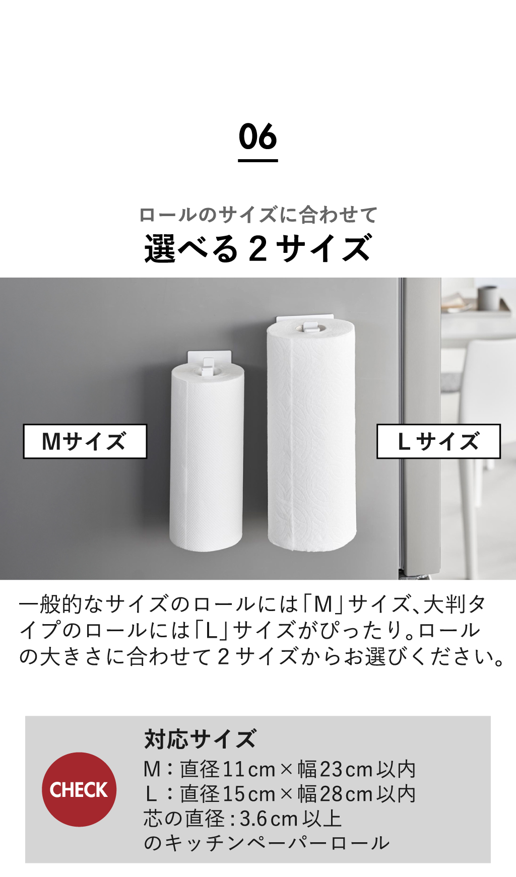 直径11cm×幅23cm以内、芯の直径3.6cm以上のキッチンペーパーロール
