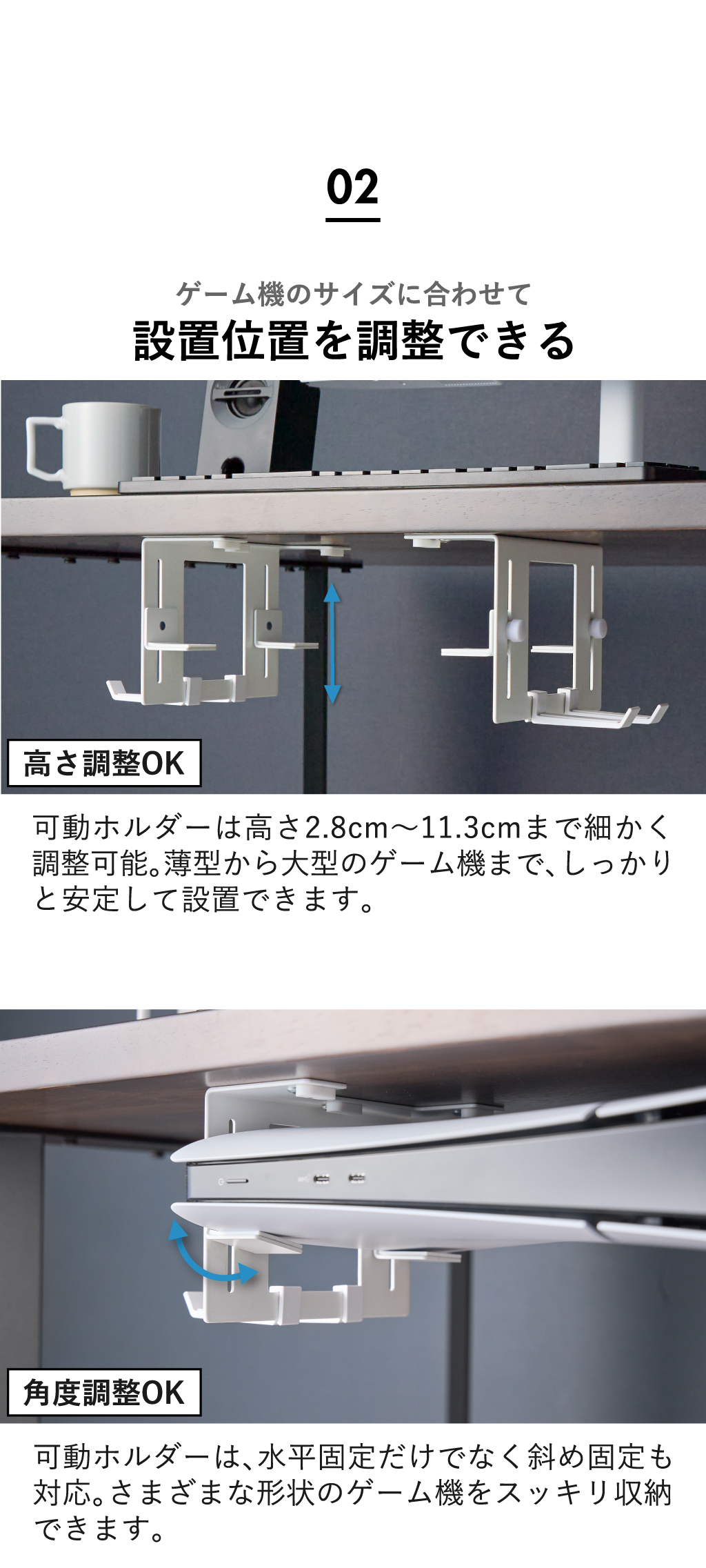 可動式デスク下ゲーム機ホルダー smart