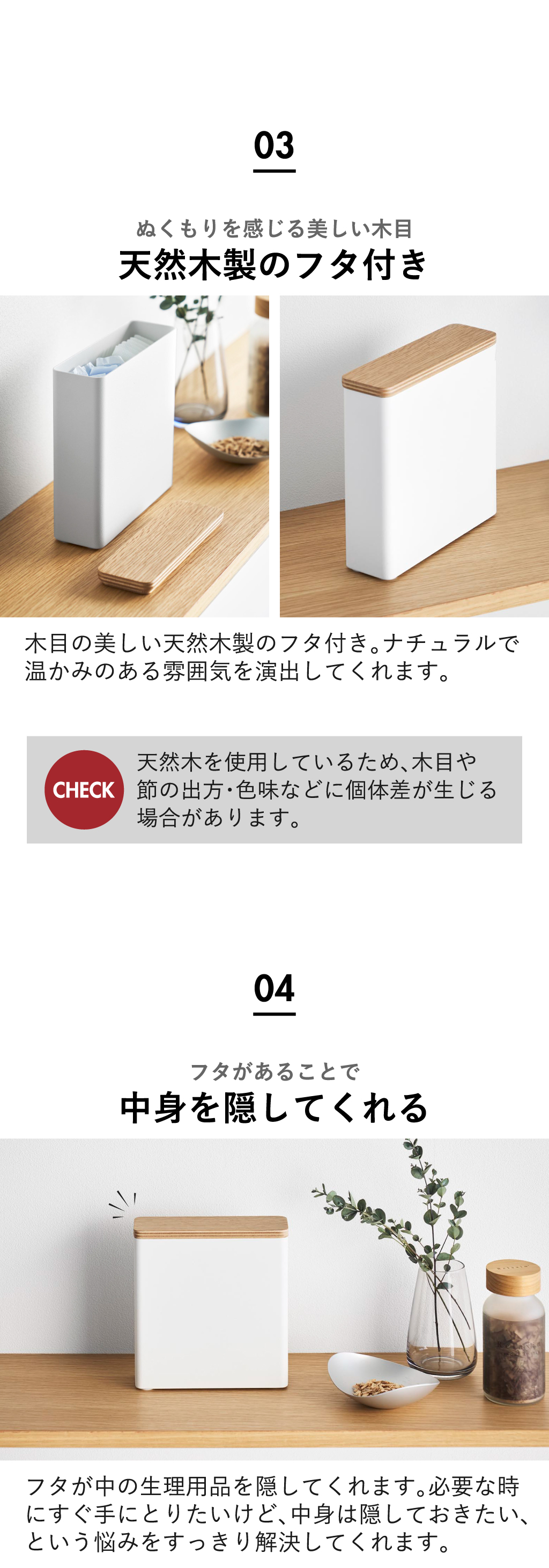 天然木製のフタで中身を隠せる
