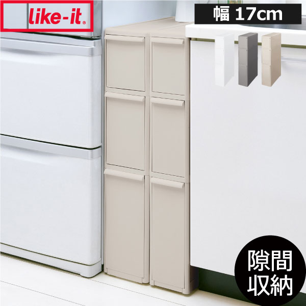 | サイズ | 幅17cm×奥46.5cm×高さ82cm (引き出し内寸) 上段・幅13x奥行き43.4cm×高さ16.4cm 中段・幅13x奥行き43.4x高さ22.3cm 下段・幅13×奥行き40.5×高さ30.8cm |