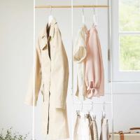 フレーム内には3本のバーがあり、洋服の長さによって掛ける場所を使い分けることができます。1段のバーにはロングコートやワンピースを。2段のバーには、上段にジャケットやシャツ、下段にパンツやスカートを掛けるなど、気軽に整頓して収納できます。